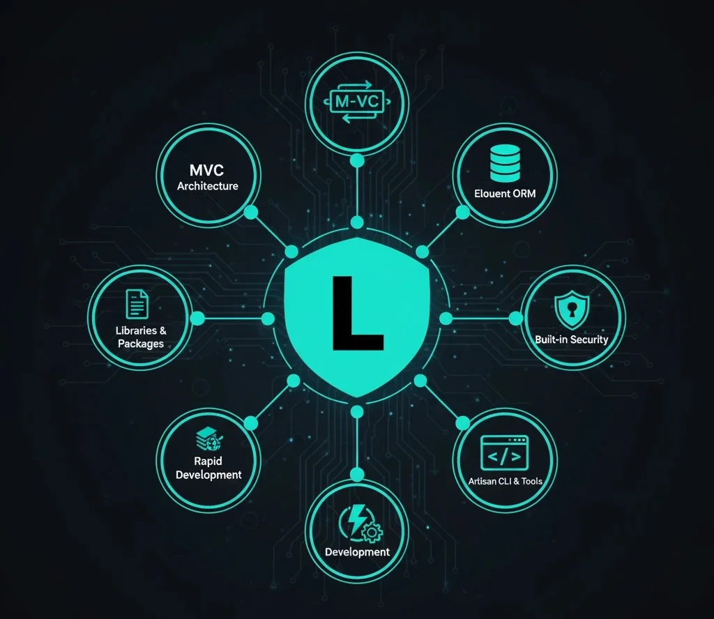 - Eloquent ORM: Simplifies database operations without writing raw SQL.