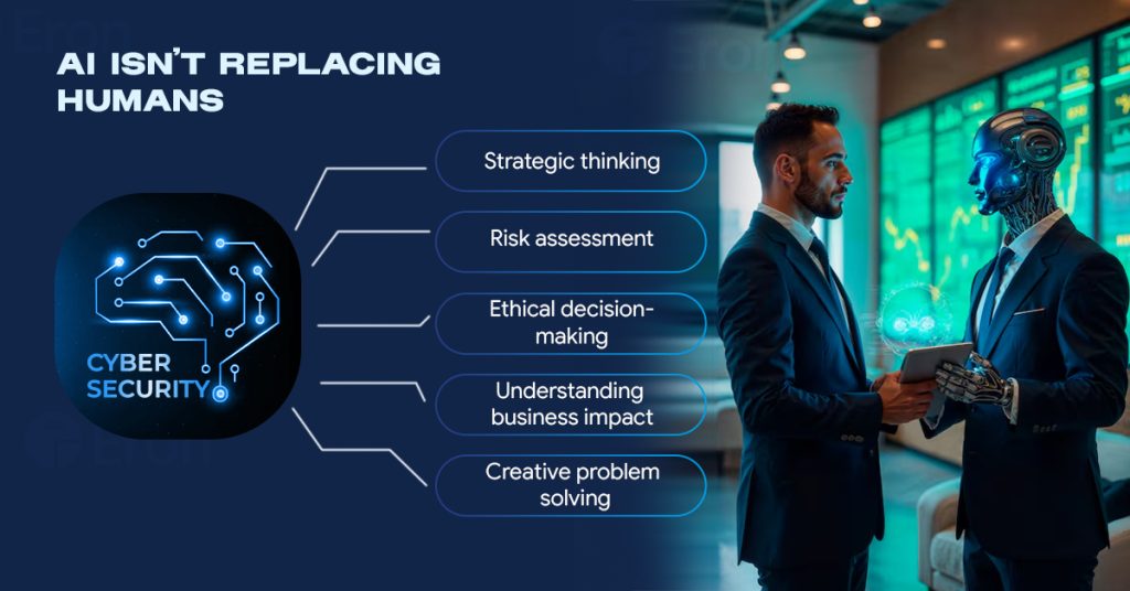 AI handles repetitive, data-heavy tasks. But cybersecurity still requires: